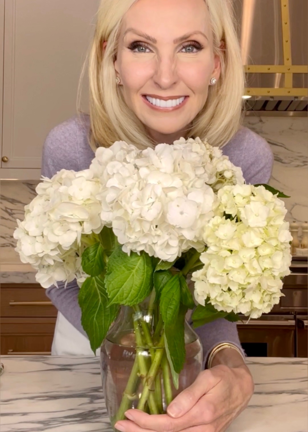 How much do you love hydrangeas? They are one of my go to flowers for a quick and easy centerpiece, nothing else needed! While they last a long time compared to other cut flowers, did you know you can actually revive one you may have thought you needed to toss? Honestly, this flower hack is so fun I secretly look forward to one wilting, just to watch the magic ✨?