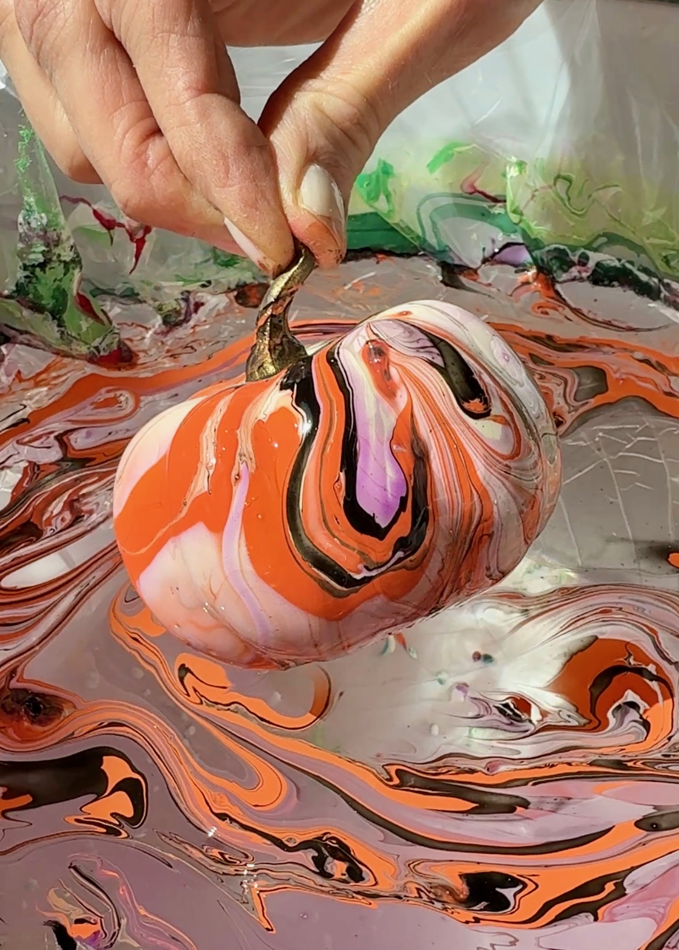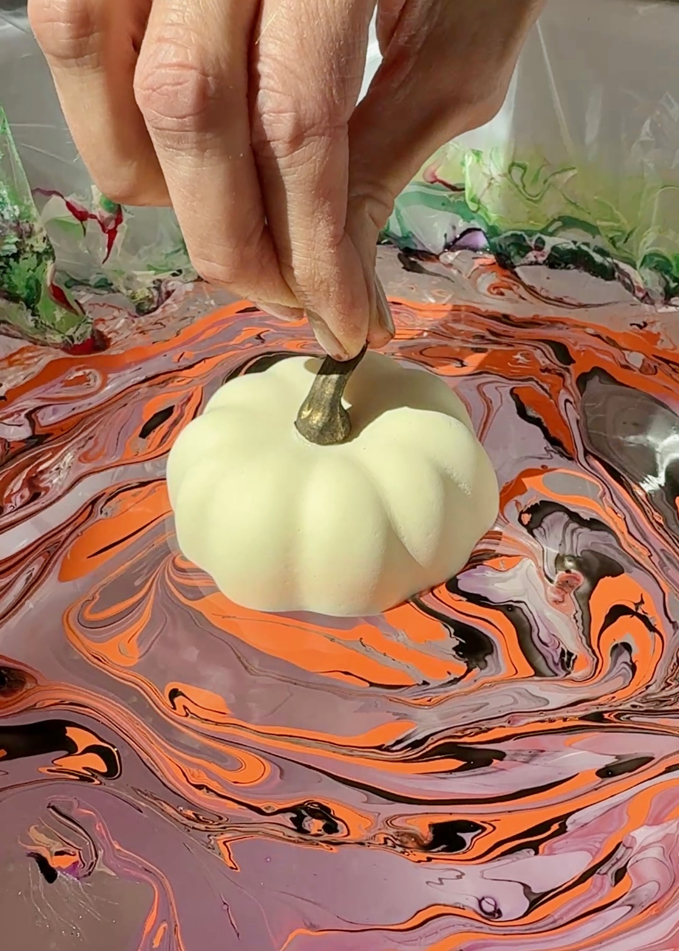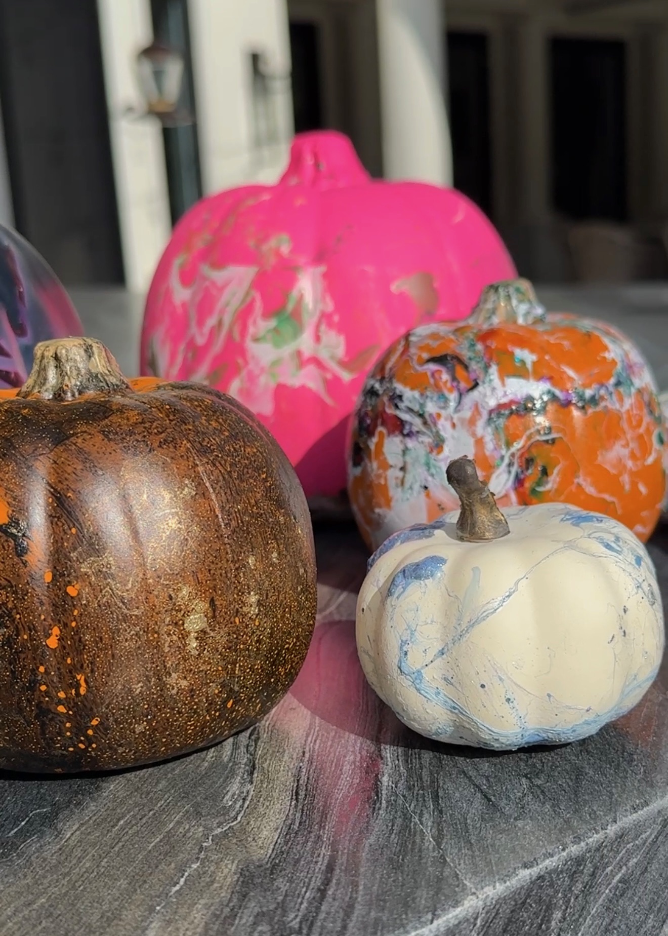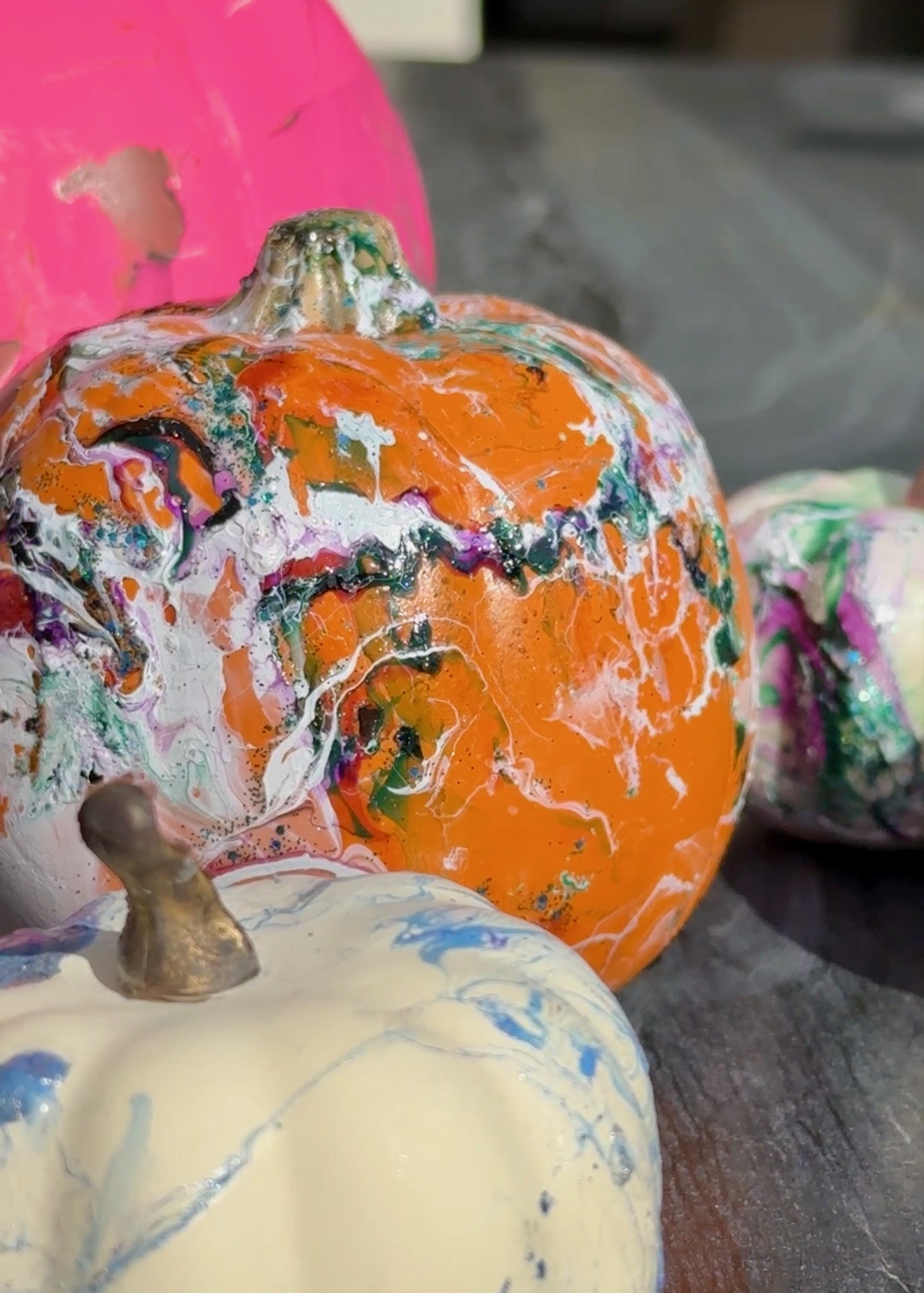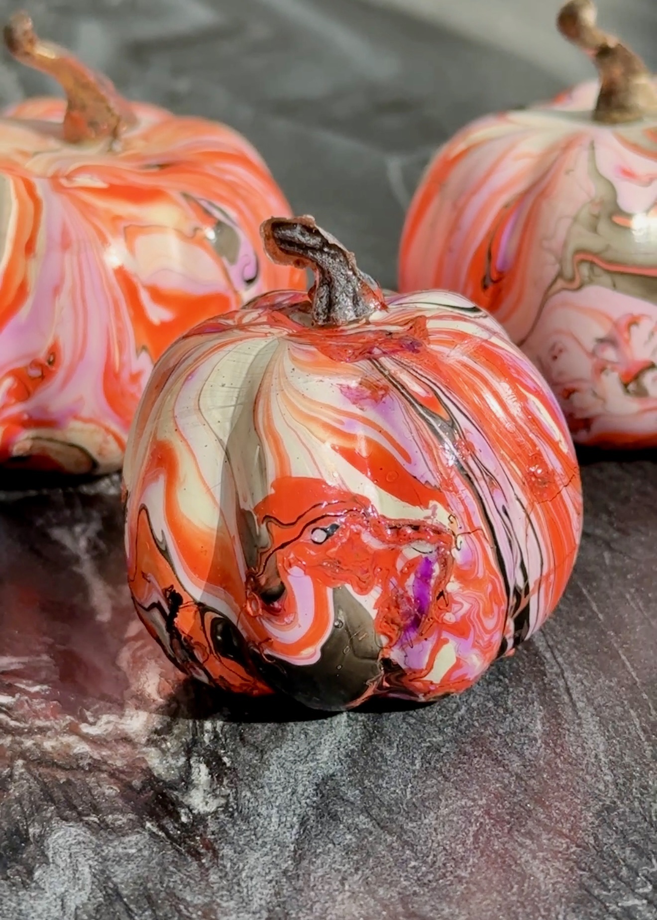 Are you still carving pumpkins? Our neighborhood critters make it almost impossible 🦝🫢 So this year instead of cutting I decided to dip ‘em 😉 In theory it’s great idea and boy are they impressive…when it works, emphasis on “when”! Although it doesn’t take any special skills, it can be super frustrating, especially if you’re trying to do larger pumpkins…and the amount of nail polish 💅 it takes is surprising, so buy the cheapest you can find (I picked mine up at the Dollar Tree). I went with faux pumpkins so I could reuse them year after year, but real ones work here, too, just make sure you wash and dry them before you start 🤓