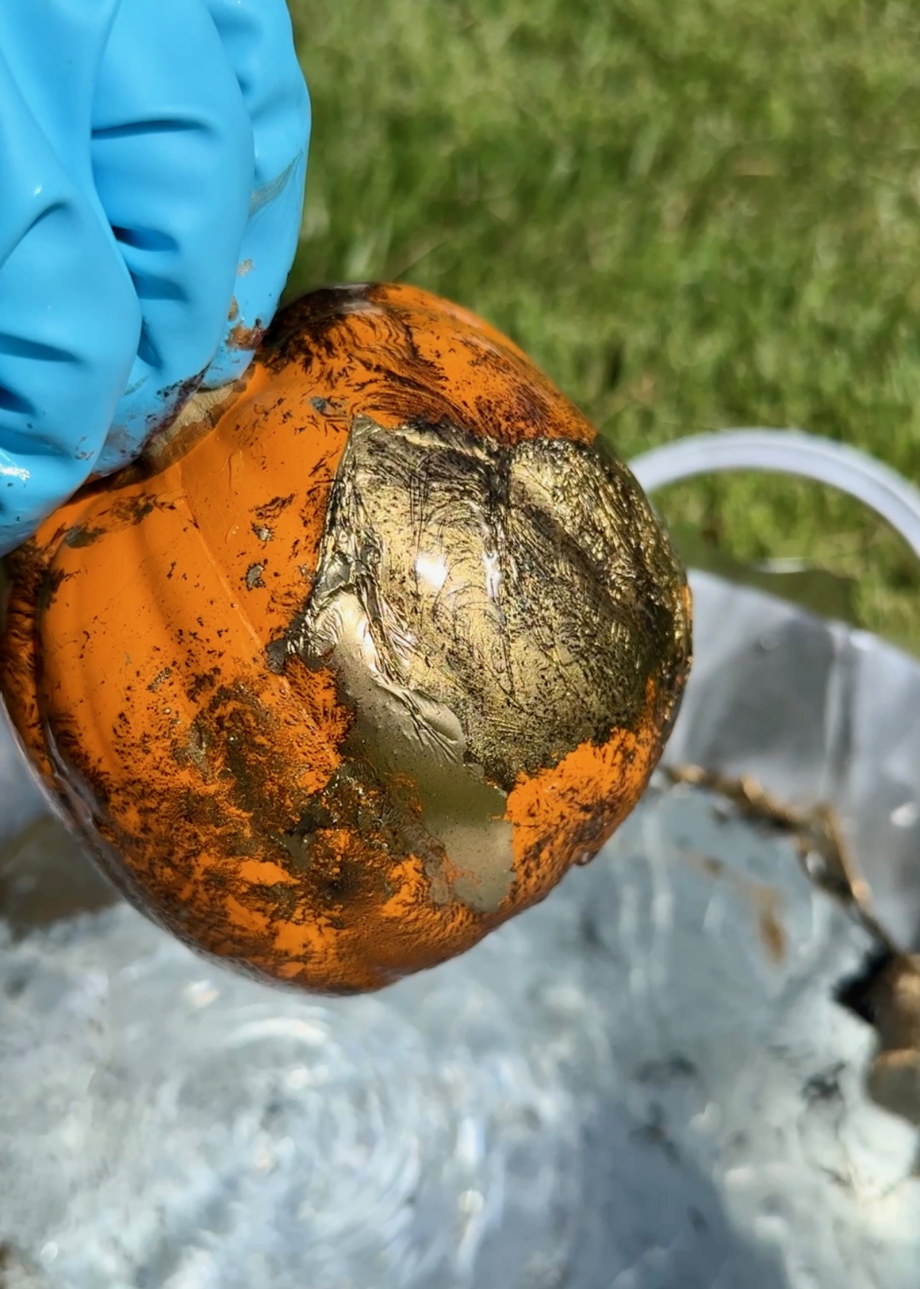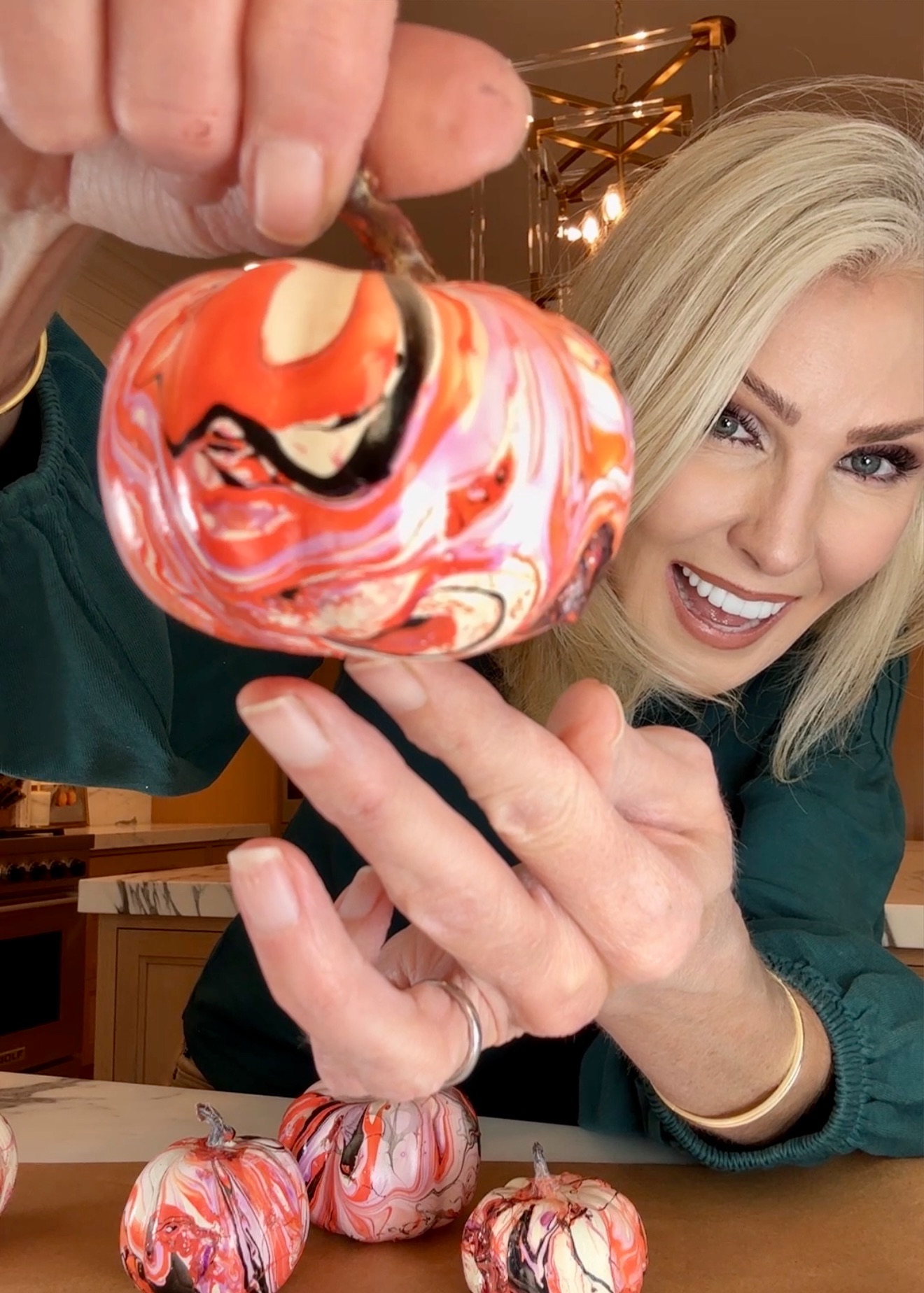 Supplies You’ll Need 🛒: Nail polish (lots of it — buy the cheapest you can find), Pumpkins (faux for reusing year after year, or real — just wash + dry first), a bucket of water (line it with foil or a bag to protect the bowl).