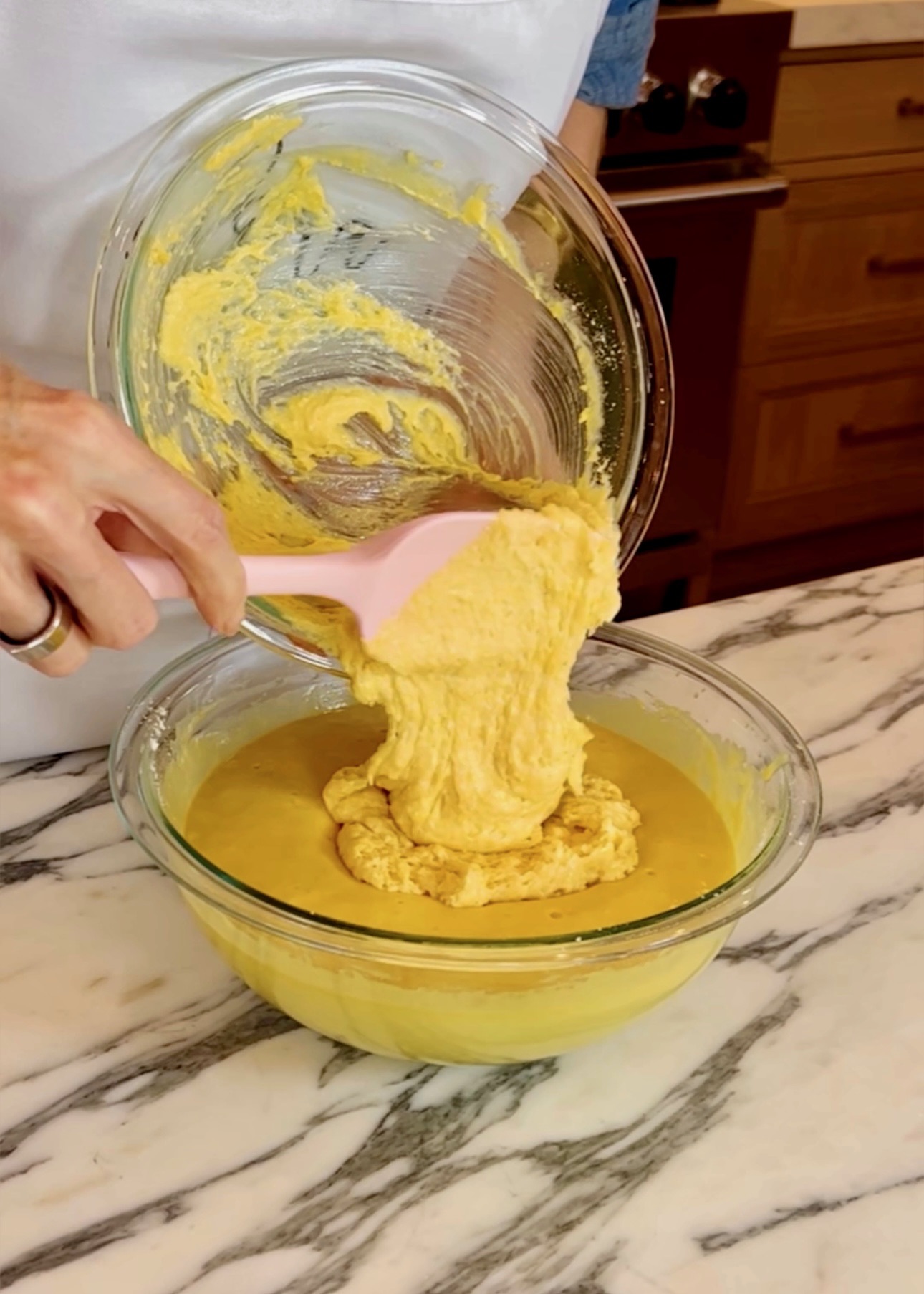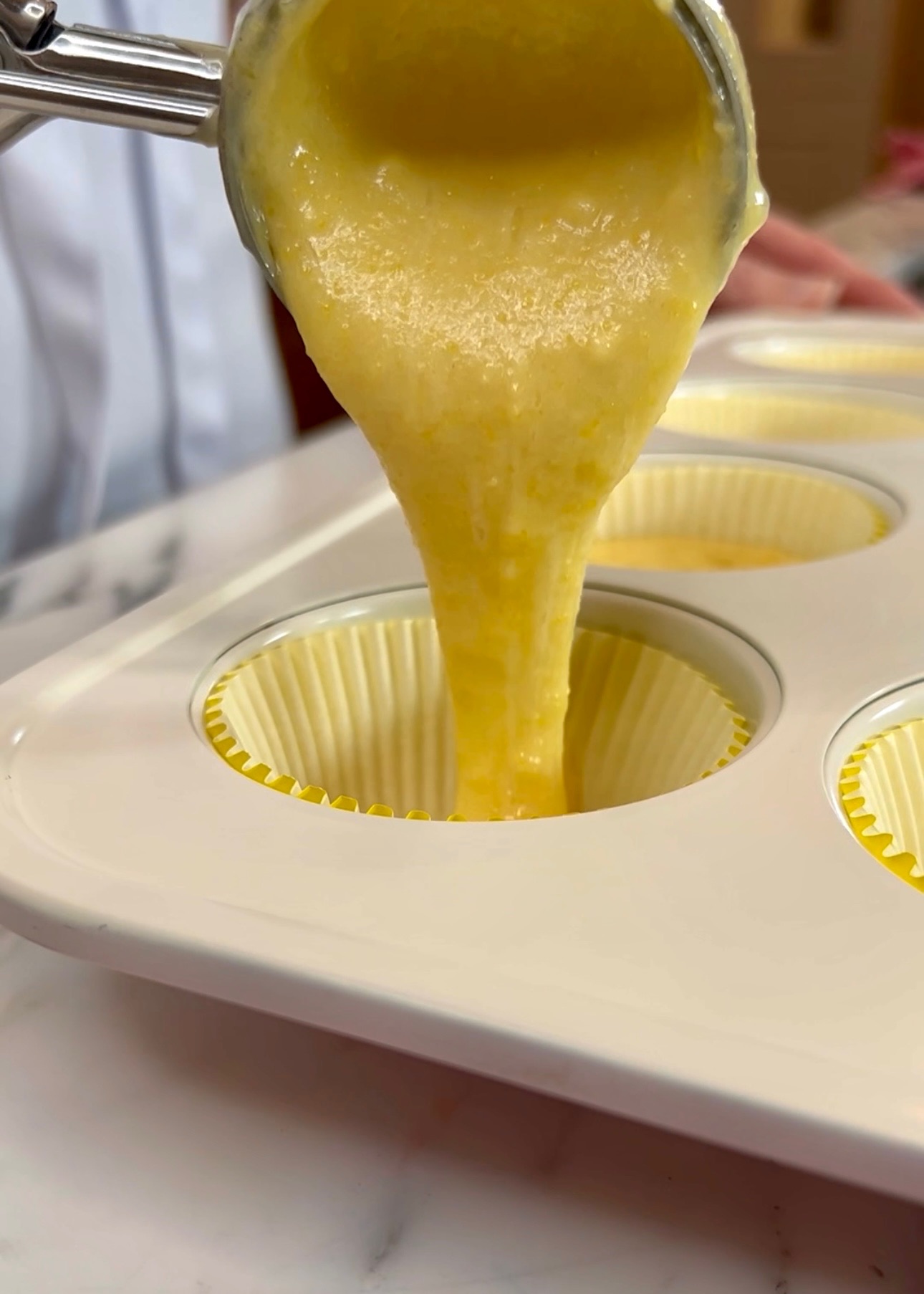 To make this guy, follow the box recipe for each then combine the batters. Now we are ready to make cornbread cupcakes!