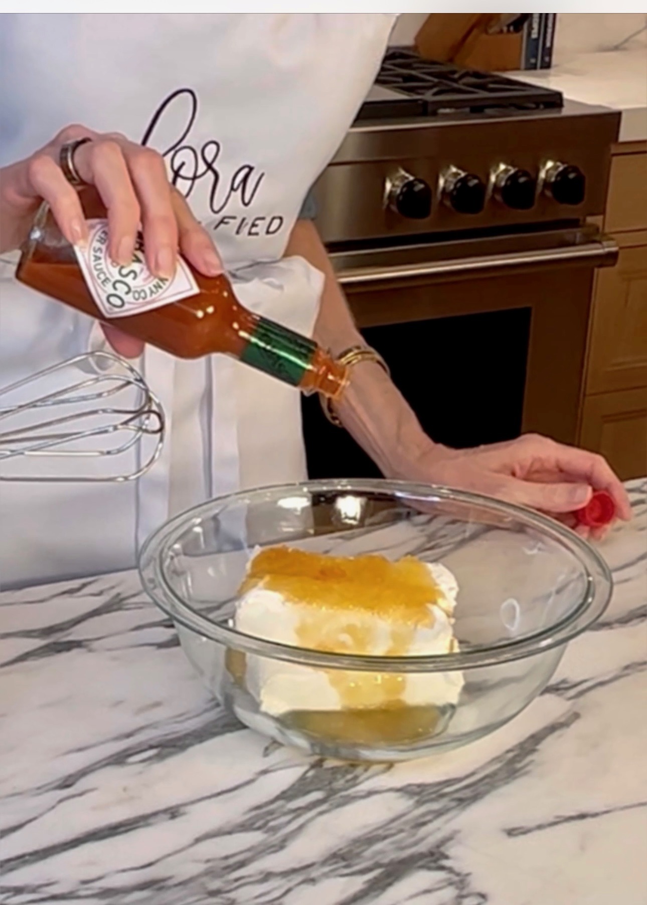 Using a mixer, mix until well combined and smooth. When it comes to the hot sauce, do whatever you feel will work for your tastebuds.