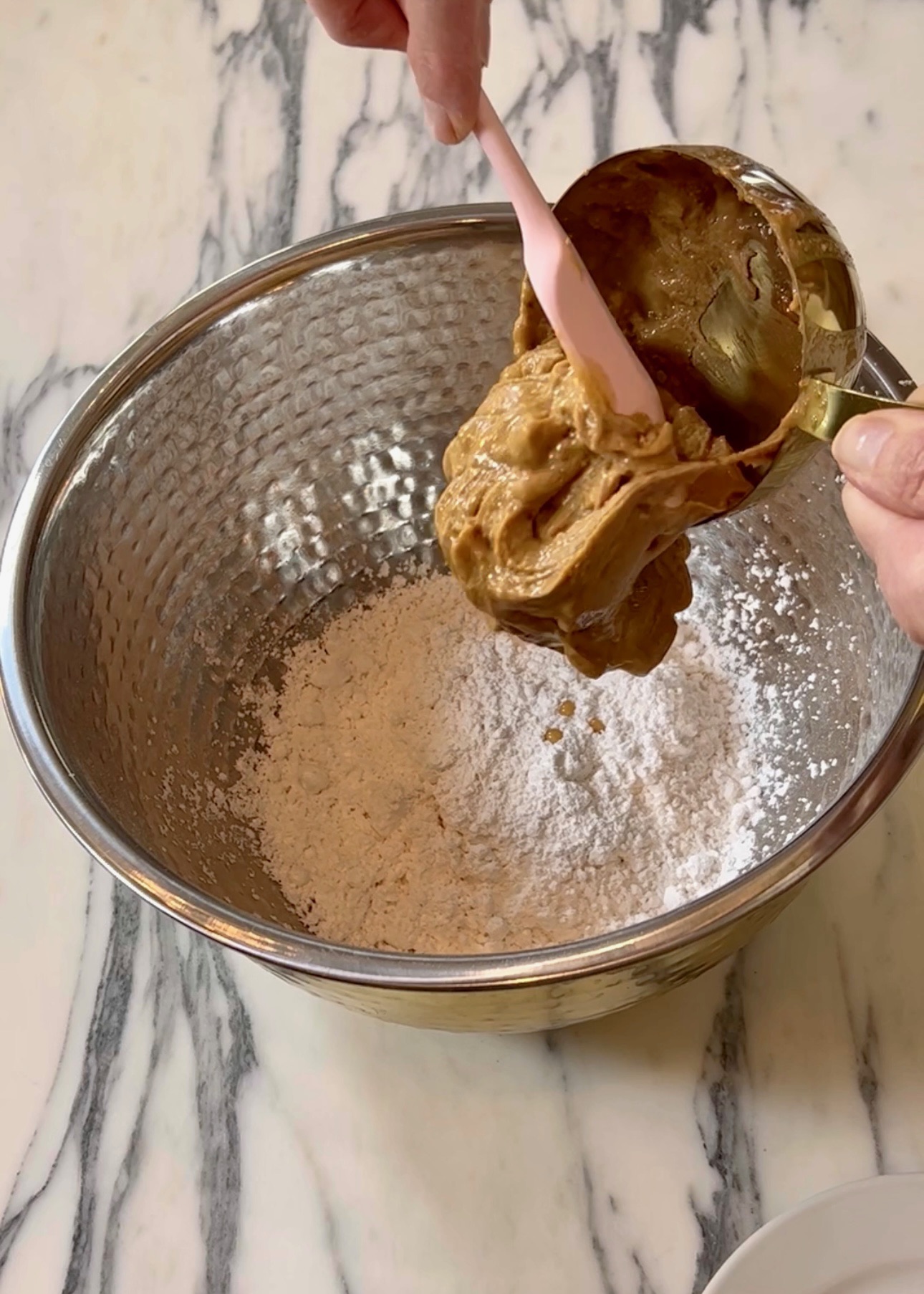 Start by mixing your powdered sugar, cream cheese, and peanut butter together. Here’s a link to my favorite mixing bowls. Next, fold in your two tubs of cool whip. It’s kind of like you’re making a peanut butter cloud of love ? Pour into crusts and freeze or refrigerate until firm.