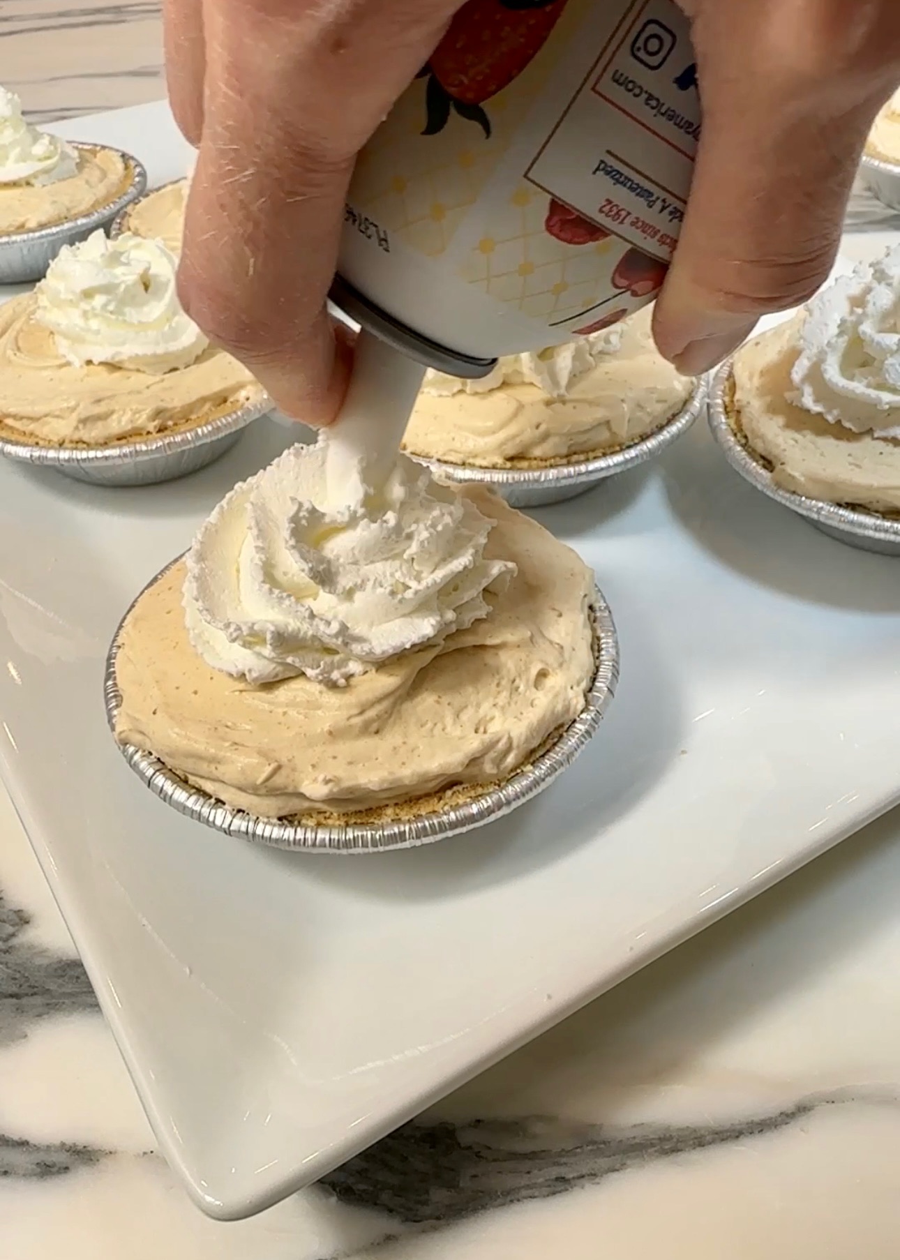 NOTE: This recipe makes 2 peanut butter pies or about 16 mini pies. I went with the mini version to make sure I don’t eat the entire pie at once?