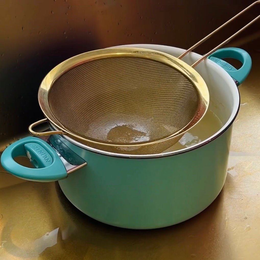 How do your drain your pasta? I used to stick the strainer in the sink and carefully pour trying not to flood it causing pasta backwash! Luckily, those days are over thanks to this insanely easy hack!