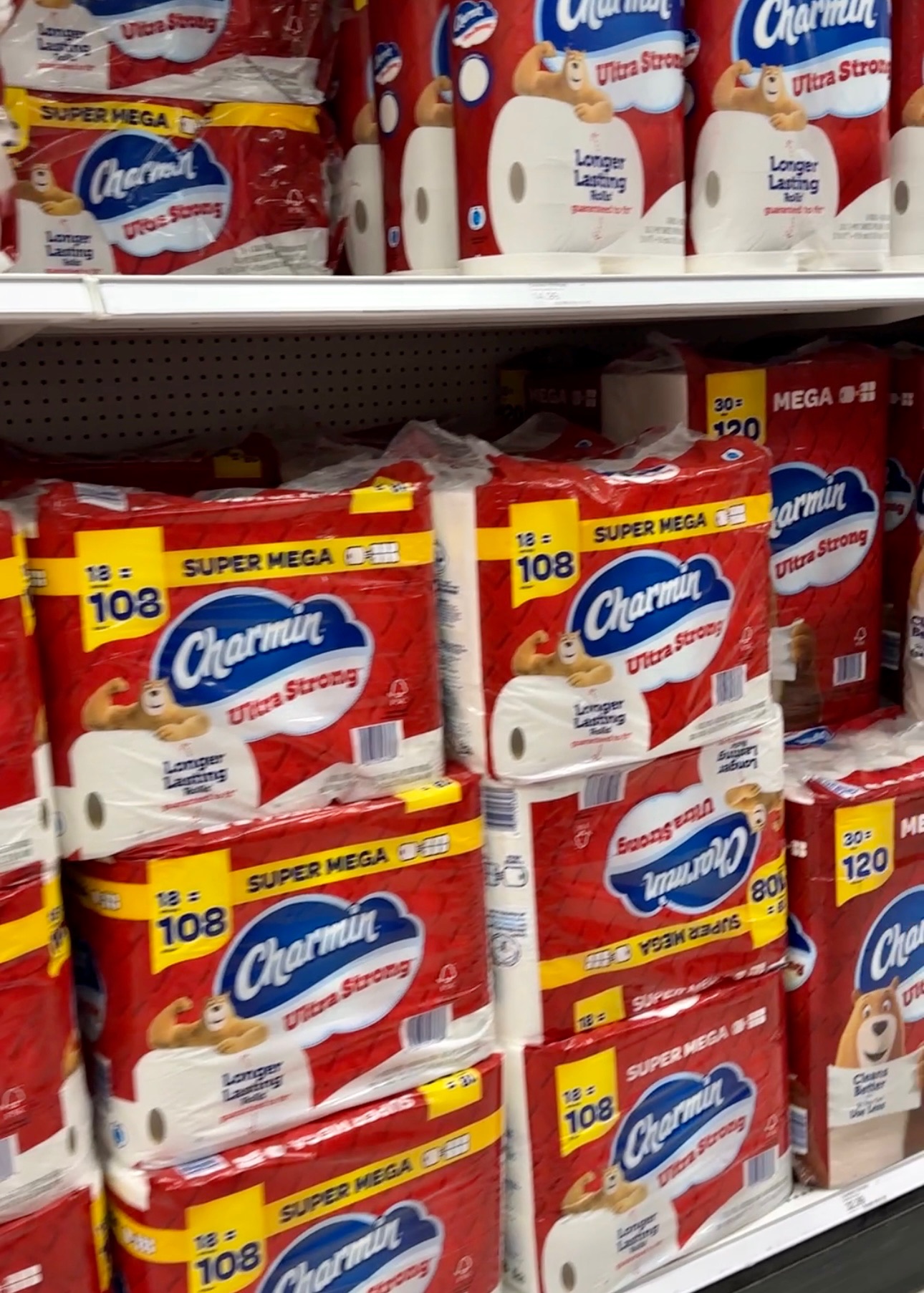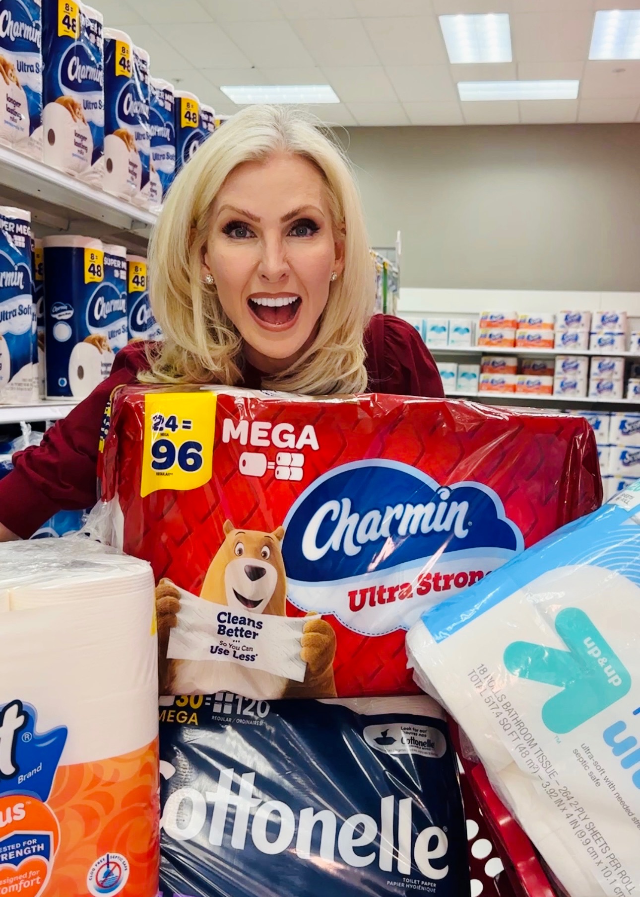 Our first stop: Walgreens. Grab your cottonelle coupons! This is the best place to buy this brand. Next up is Target! Here, your best bet is Scott and Charmin. Boy, do they have a lot stocked! For additional savings, check out the Target app. CVS is also a great spot for Charmin.