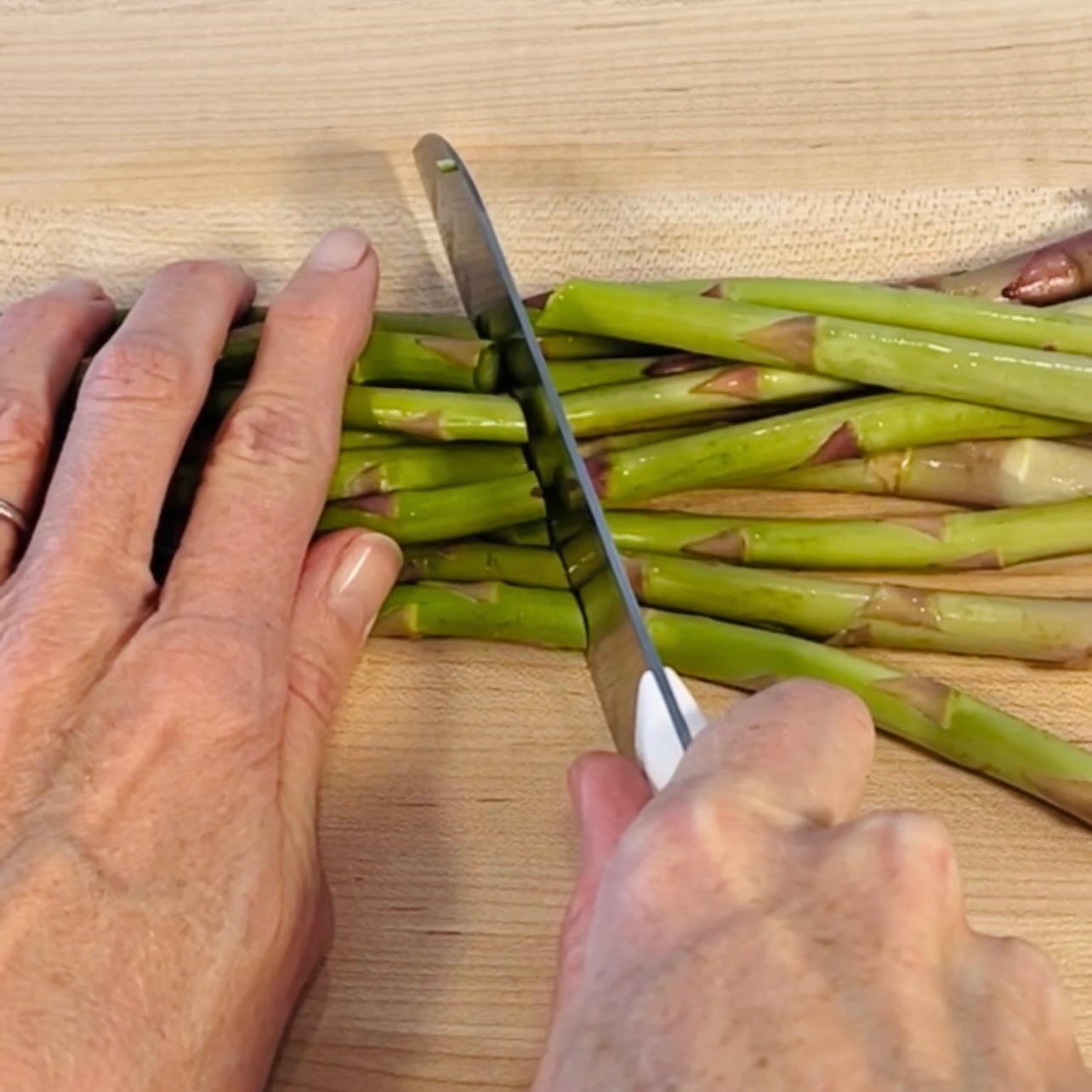 What’s your favorite springtime vegetable? Mine has to be asparagus. I make it so often, I have it down to a science! Here’s my quick hack for making sure only the tender part of the spear hits your plate. No peeling needed! Your family is going to love this one.